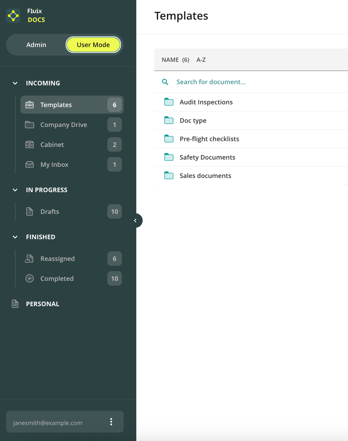 This is the section where you can access and work with the documents as an end-user in the Web User App. To access the documents on the device, download the Fluix Docs App for iOS from the App Store.