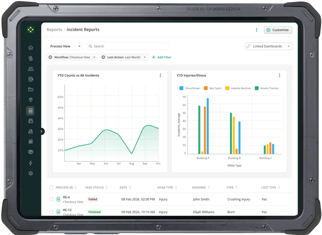 Fluix is the mobile-first inspection tool that helps capture every incident, injury, or near miss the moment it happens.