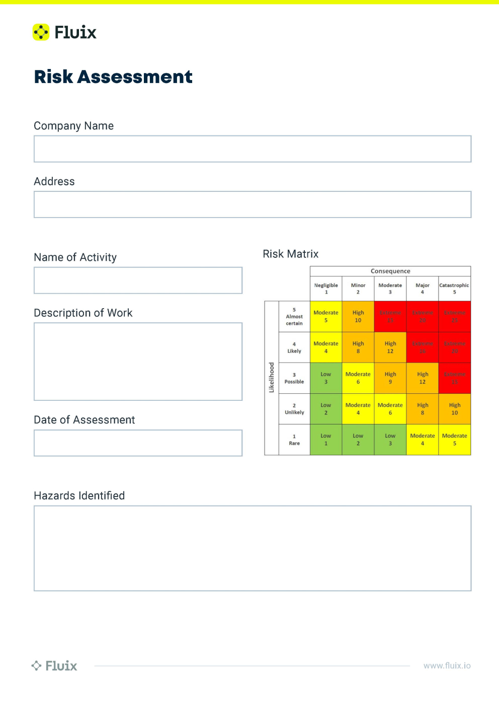 This document outlines the details of hazardous work activities, assessing the risks involved and setting out control measures to reduce these risks.