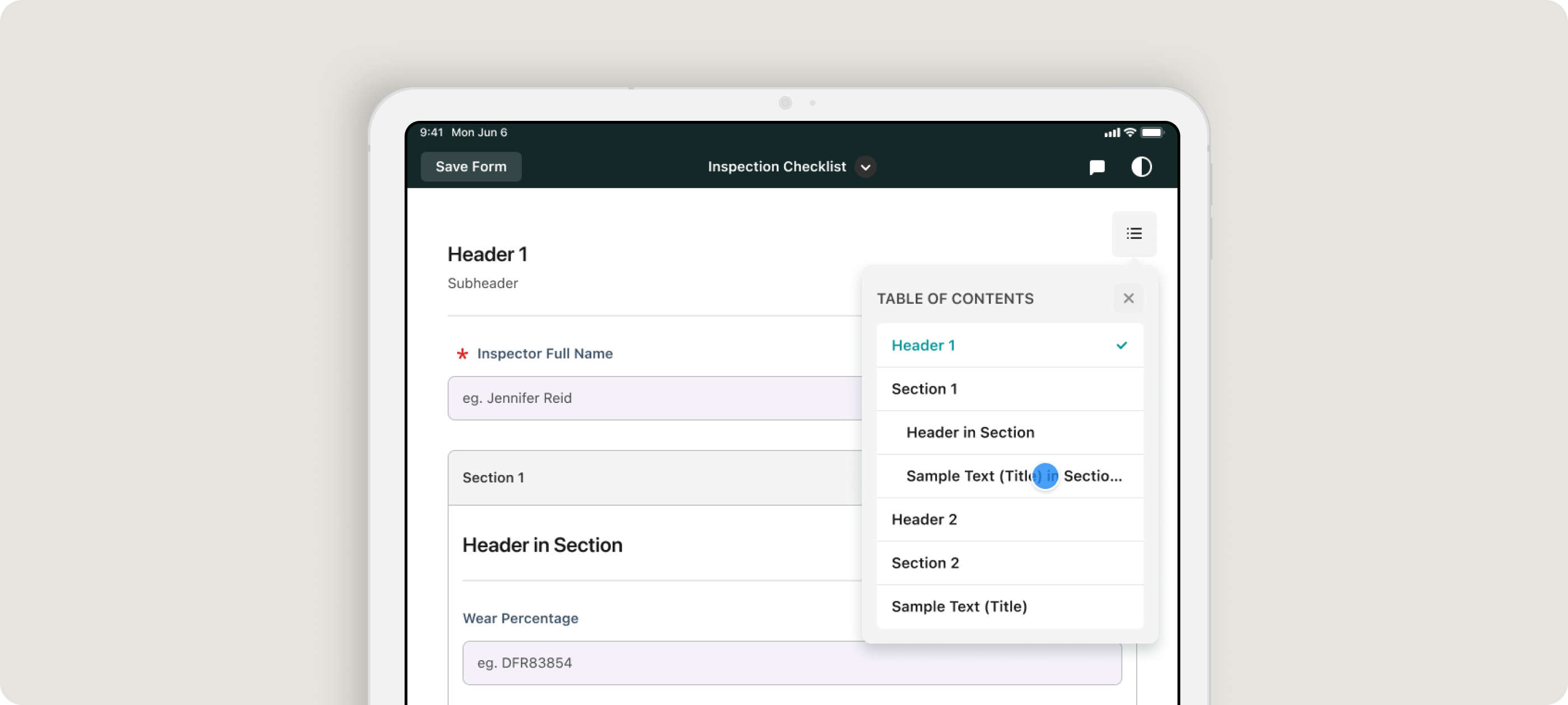 - You can now use a Table of Contents in your dynamic forms! It’s automatically generated based on the headers, sections, and text that your Fluix admin has set up, so you can quickly jump to any part of the form without endless scrolling.
